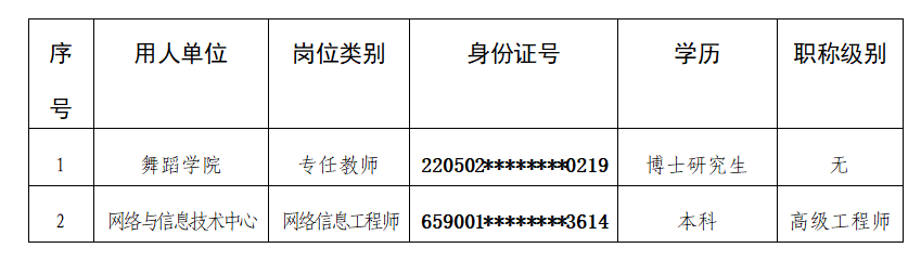 根据《新疆艺术学院2025年高层次人才引进公告(第一批次)》和《新疆艺术学院2025年高层次人才引进公告(第二批次)》要求,经简历推送,用人单位遴选、评议,学校体检、考察、党委审议等环节,确定了高层次人才引进人员,现对以下2名拟聘人员进行公示。