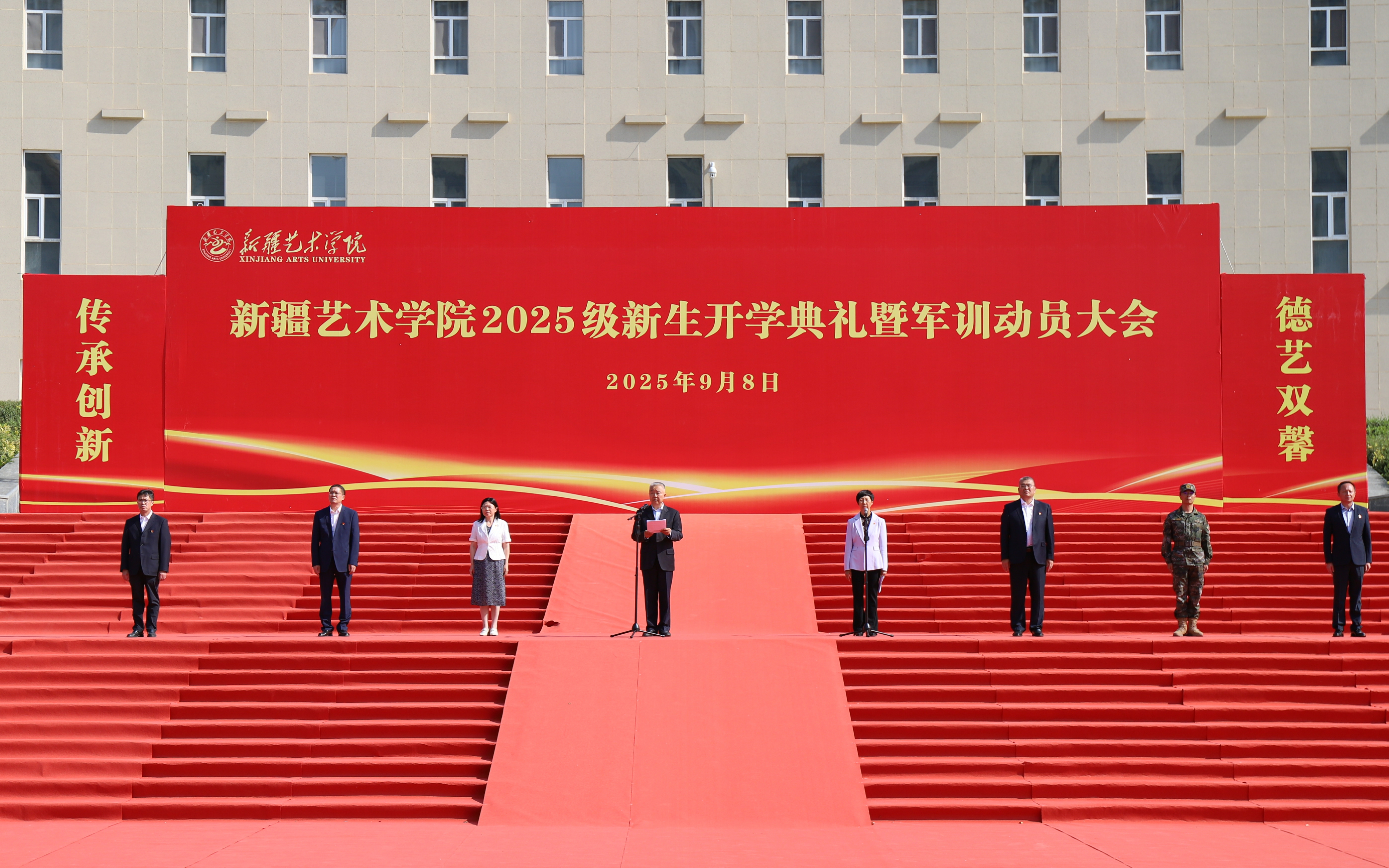 9月8日上午,新疆艺术学院举行2025级新生开学典礼暨军训动员大会。学校党委书记章立新出席并讲话,学校领导班子成员钱玲、全立新、陈建平、周达疆、刘昌海、杨帆,承训部队官兵、各学院及相关职能部门负责人、辅导员、班主任及2025级新生参加大会。学校党委副书记樊文平主持会议。