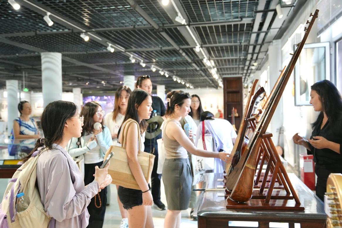 夏令营团组走进学校万桐书木卡姆文献馆、中华传统乐器馆及中华文化体验馆等文化艺术场馆,了解万桐书等老一辈音乐家抢救木卡姆艺术的感人事迹、欣赏中国各民族传统乐器、沉浸式体验中华优秀传统文化的魅力。