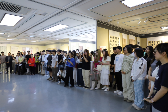 5月14日,砚驻华年——书法学院2025届研究生毕业作品展在团结校区美术馆开幕。新疆文联副主席、新疆书法家协会主席张鸿林,著名书画家、书法学院名誉院长闵荫南出席开幕式并讲话。学校党委常委、副院长全立新出席并宣布开幕,党委常委、宣传部部长周达疆、相关单位负责人及书法学院师生参加开幕式。