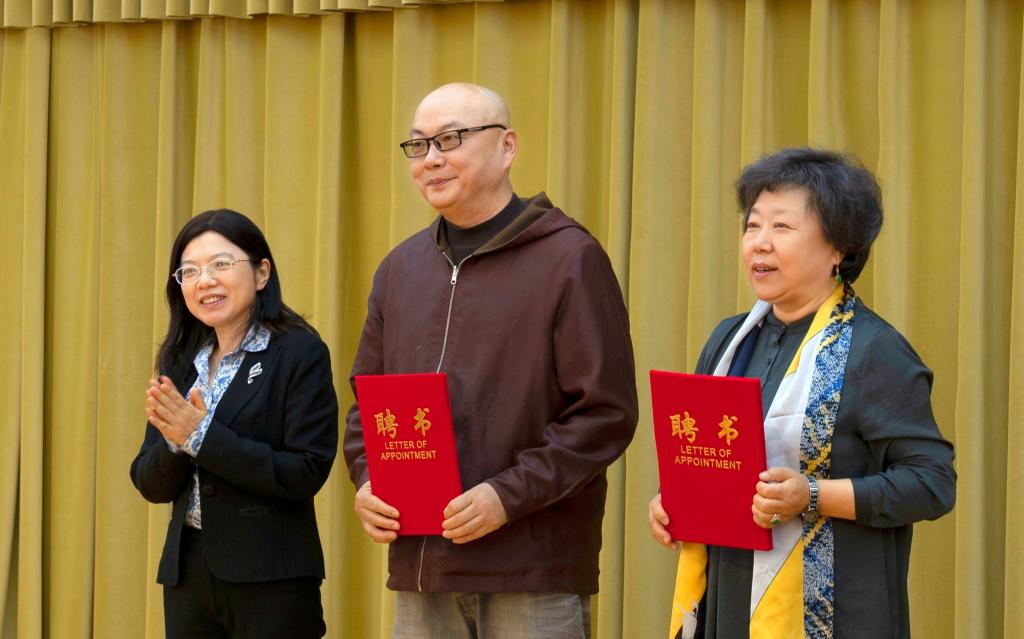4月23日,学校邀请著名诗人欧震、朗诵艺术家王静来我校开展专题讲座。学校党委副书记、副院长钱玲出席并向两位专家颁授新疆艺术学院外聘“硕士研究生导师”聘书。