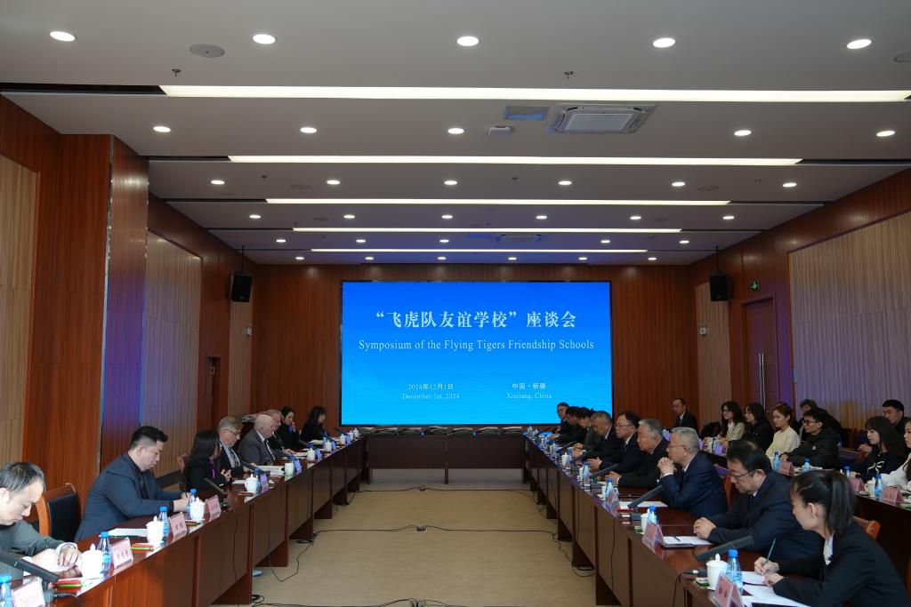 12月1日,美中航空遗产基金会为新疆艺术学院等4所新疆高校、3所新疆中学授牌“飞虎队友谊学校”。美中航空遗产基金会主席杰夫·格林出席并致辞,我校党委书记章立新作为授牌学校代表出席活动。