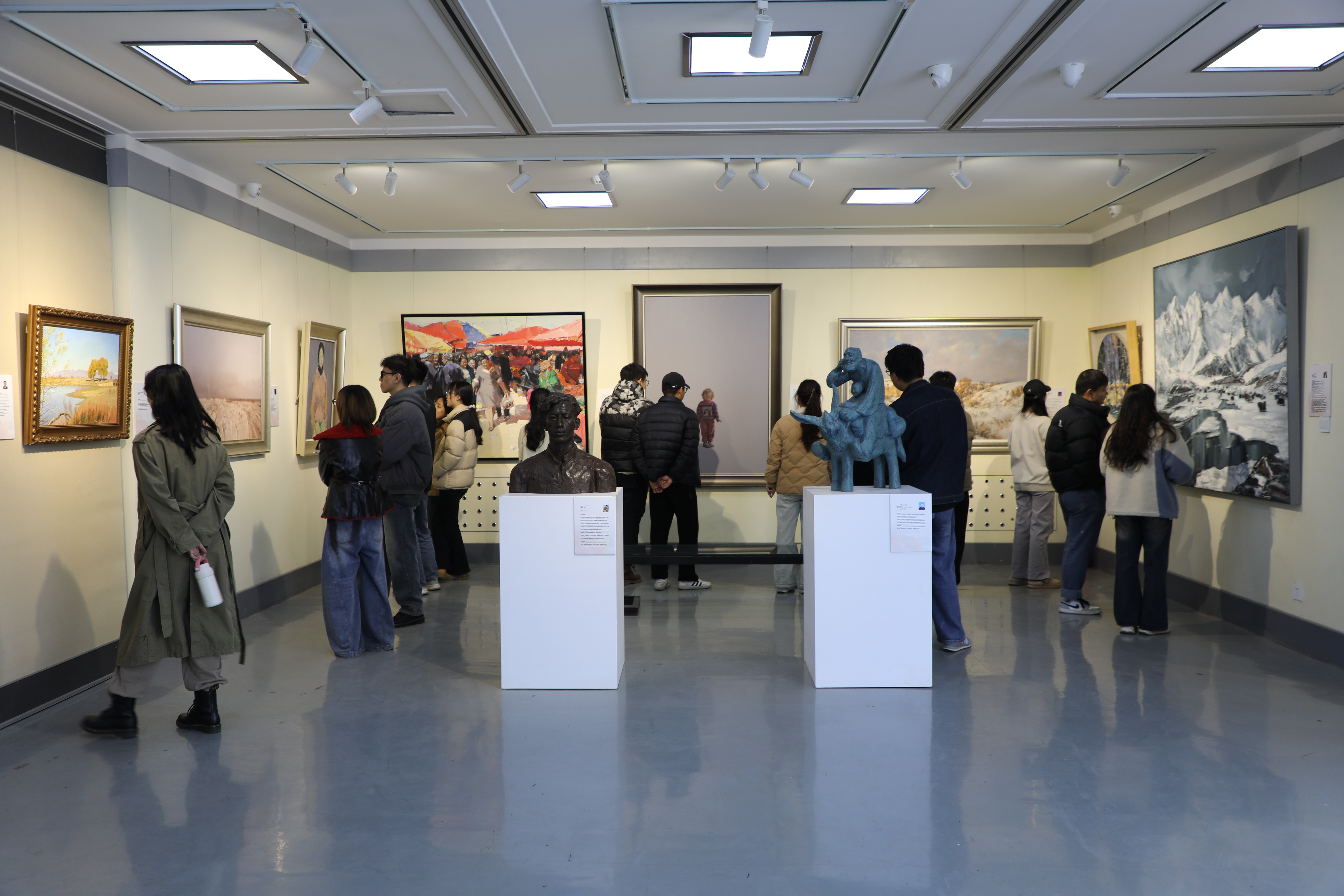 美术教学成果汇报展展出的是我校美术学院师生在教学、科研、创作等方面的成果。展品涵盖了中国画、油画、版画、水彩画、雕塑、工艺美术、装置和美术学院师生的专著、论文、专利、课题项目等成果实物76件。展览内容题材广泛、风格多样,展现了天山南北辽阔的自然风光、独特的风土人情和浓郁的生活气息。
