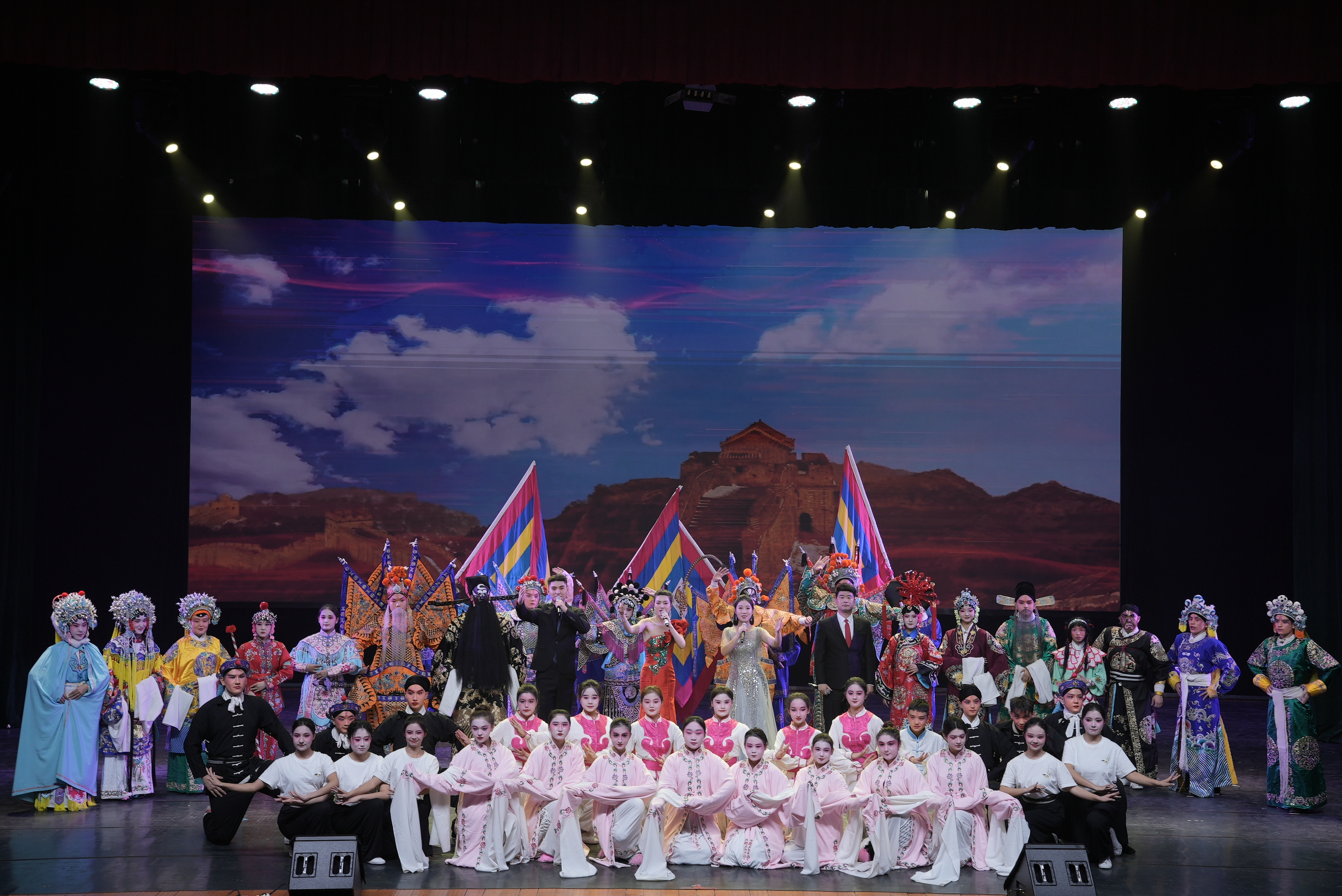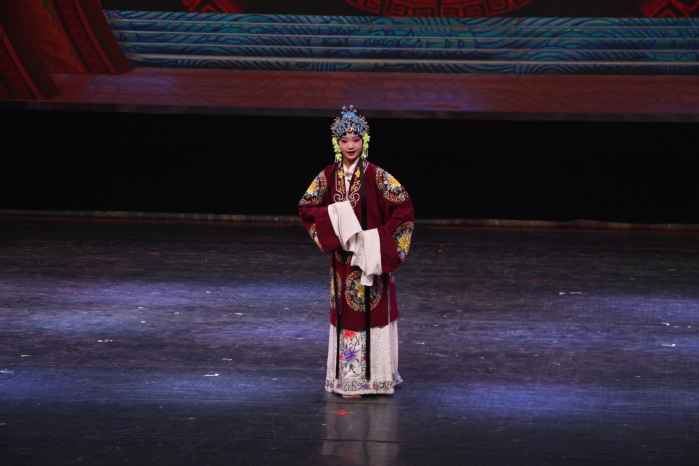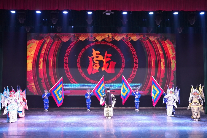 来自五个民族的29名同学,汇报演出了《穆桂英挂帅》《铡美案》《双阳公主》《定军山》《打龙袍》《大登殿》《杨门女将·探谷》《珠帘寨》《昭君出塞》《乾元山》《打焦赞》《挑滑车》等十二部经典戏曲的精彩选段和京剧歌曲《我是中国人》,唱念做打、干净利落,一招一式、有板有眼,唱腔优美动听,鼓点扣人心弦,生动演绎出“巾帼不让须眉”的女将军穆桂英、大公无私的包拯、勇猛果敢的黄忠、忠贞爱国的王昭君等人物形象。