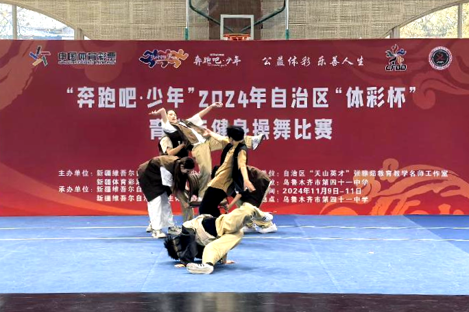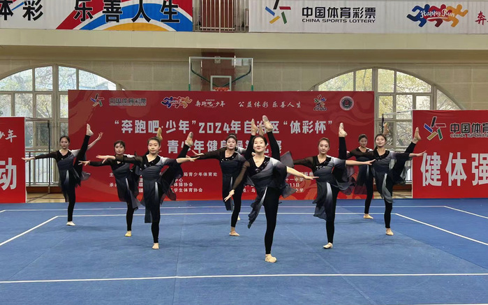 在自治区体育局青少年体育处、新疆体育彩票管理中心主办的“奔跑吧·少年”2024年自治区青少年健身操舞比赛中,新疆艺术学院健美操队获大学甲组有氧舞蹈自选动作一等奖,街舞队获大学甲组街舞(综合齐舞风格)一等奖、霹雳舞比赛青年组男子单人一等奖。