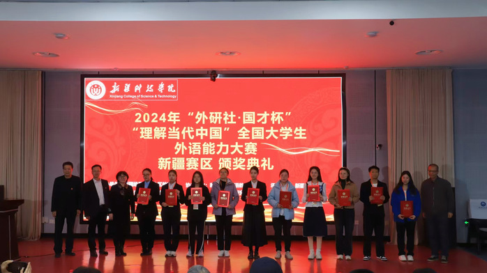 在自治区教育厅、兵团教育局主办的2024“外研社·国才杯”“理解当代中国”全国大学生外语能力大赛新疆赛区决赛中,美术学院学生陈忆诺获本科组笔译铜奖、设计学院学生李心雨获国际传播综合能力赛项优胜奖、文化艺术学院学生魏晓蕊获口译赛项优胜奖。