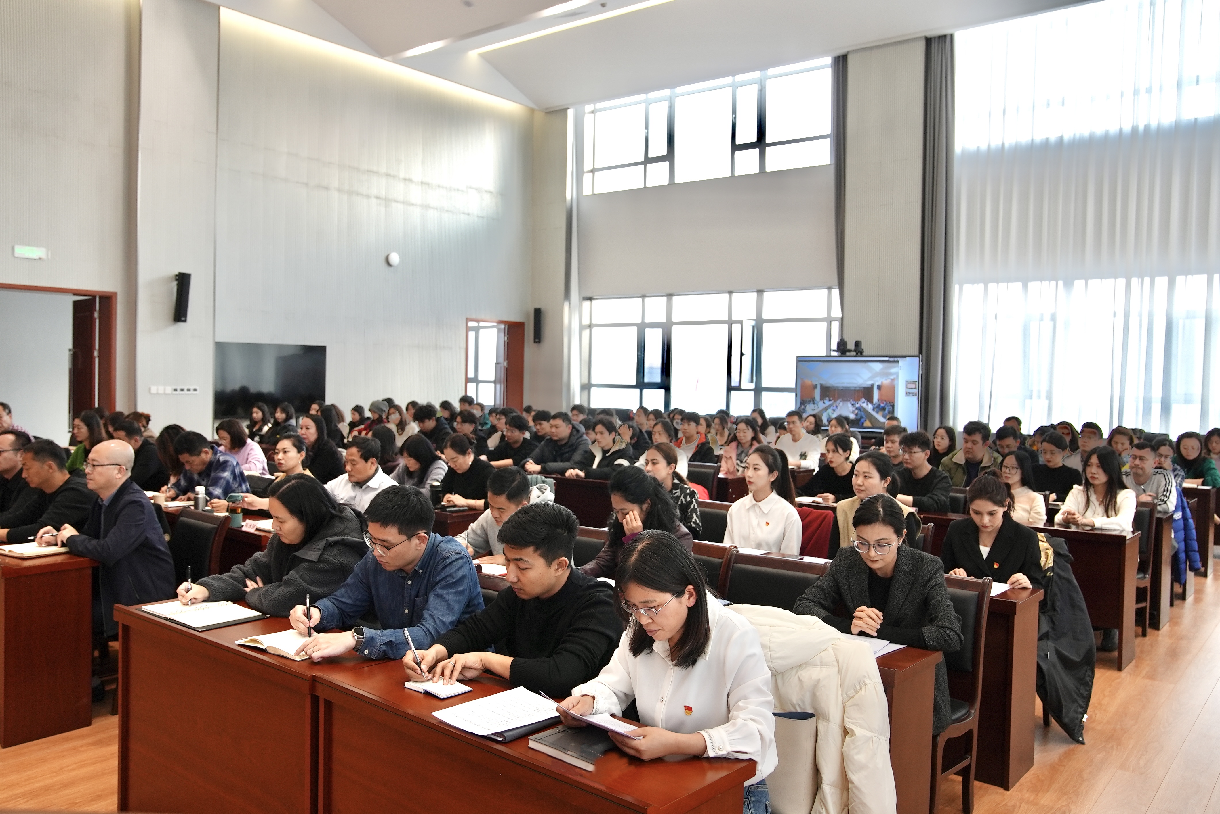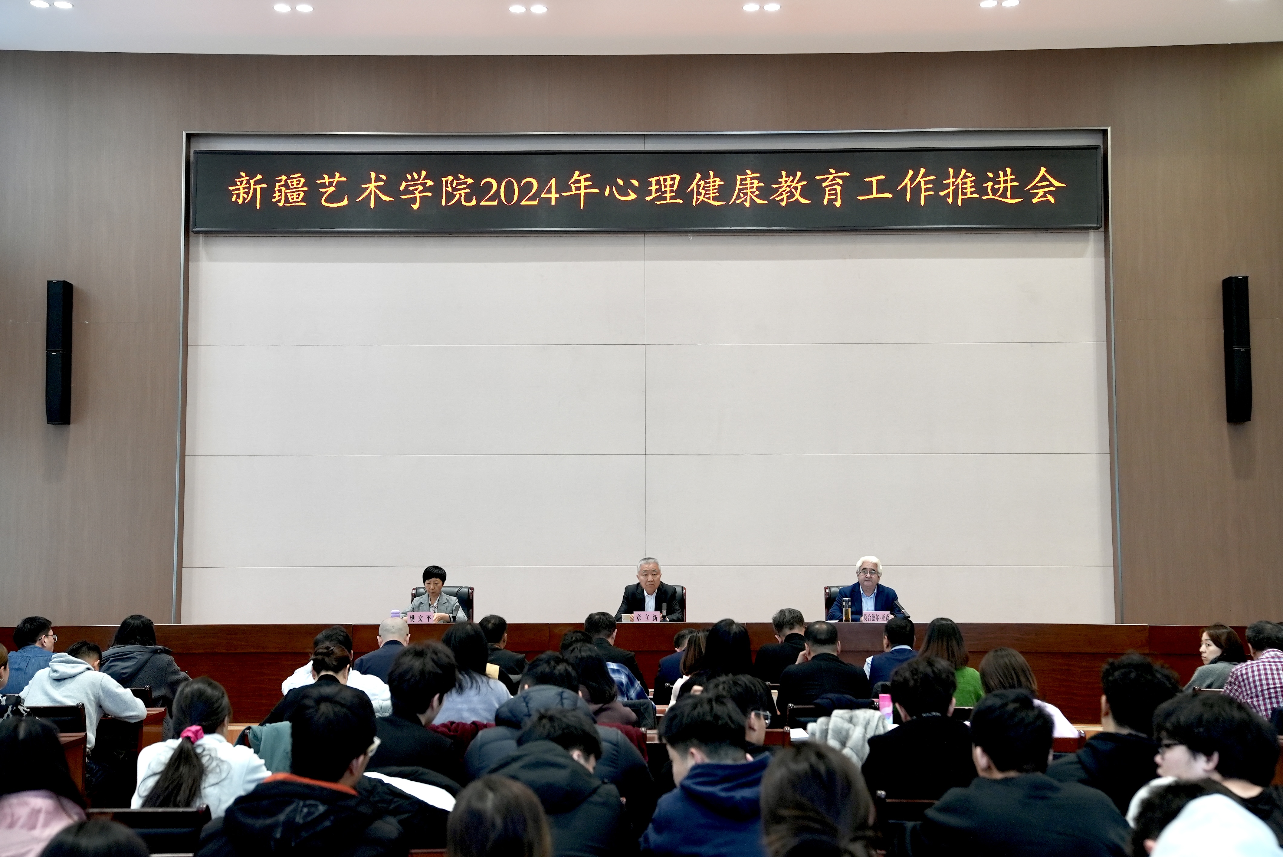 11月19日,学校举行2024年心理健康教育工作推进会。学校党委书记章立新出席并讲话,党委副书记、院长莫合德尔·亚森主持会议,党委副书记樊文平出席会议。各单位相关负责人、全体辅导员、班主任、心理健康教育与指导中心教师及学生代表参加会议。
