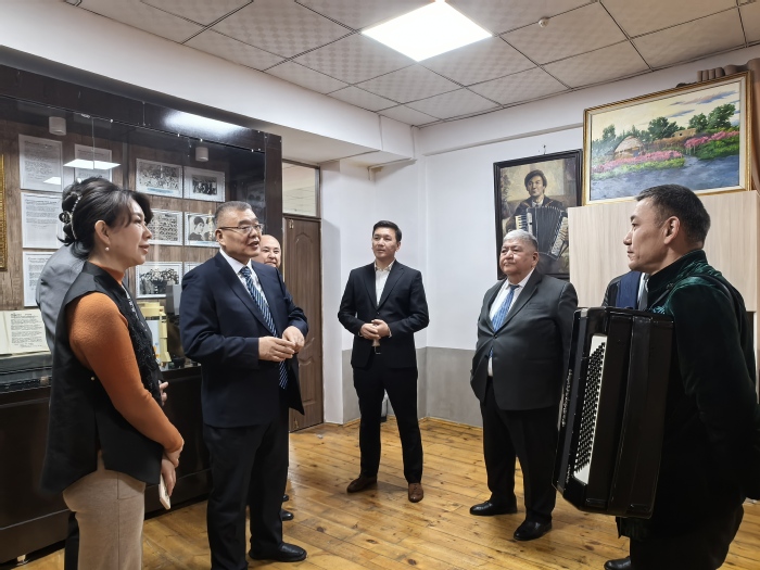 “丝路行”团组还参观访问了吉尔吉斯斯坦国立音乐学院博物馆、琴房等,师生就手风琴演奏、库姆兹制作等方面进行了座谈交流。今年上半年,两校已签署合作协议,此次访问进一步加深了双方的了解,推动了双方在教师互访、艺术展演、学术交流等方面的深入合作。