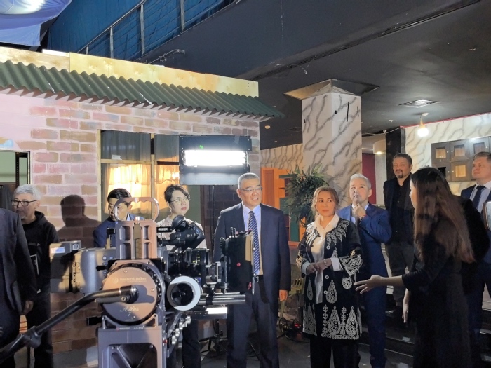 11月21日,“丝路行”团组前往哈萨克斯坦国立艺术大学,与校长NURTAZA RAUSHAN、副校长 TERUMBETOVA AKBOTA以及各院院长开展座谈交流并签署合作框架协议。双方一致认为,两校在人才培养、学术交流、文艺展演等方面有广阔的合作前景,期待未来通过持续合作深化沟通联系,增进文明互信互鉴。期间还参观了电影工作室、画廊,欣赏了小型音乐会。