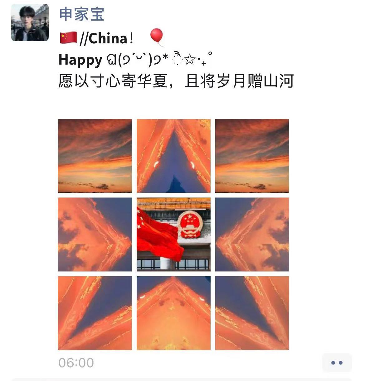 祝福祖国繁荣昌盛、国泰民安。