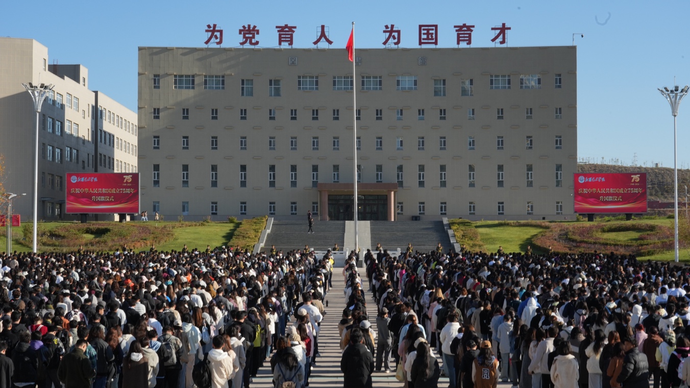 9月30日,新疆艺术学院在团结、金桥两校区同步举行升旗仪式。