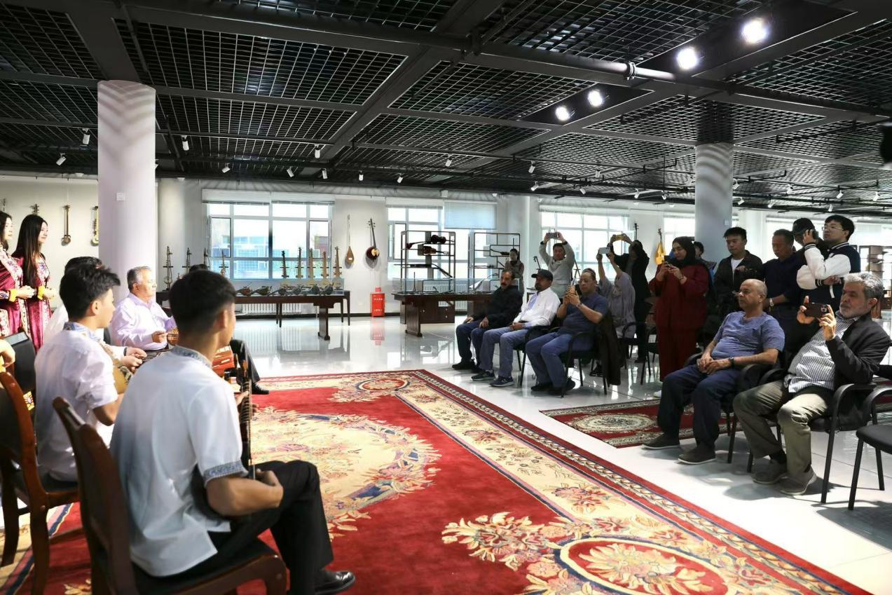 在学校万桐书木卡姆文献馆、中华传统乐器馆,参访团观看了音乐表演,领略了新疆各民族传统文化的魅力。参访团成员表示,新疆各民族音乐在某种程度上与阿曼的音乐文化有相通之处,中国政府和新疆人民在木卡姆保护和传承上做的工作,是值得借鉴的。希望今后以乐为媒,促进艺术互鉴互赏、文化交流交融。