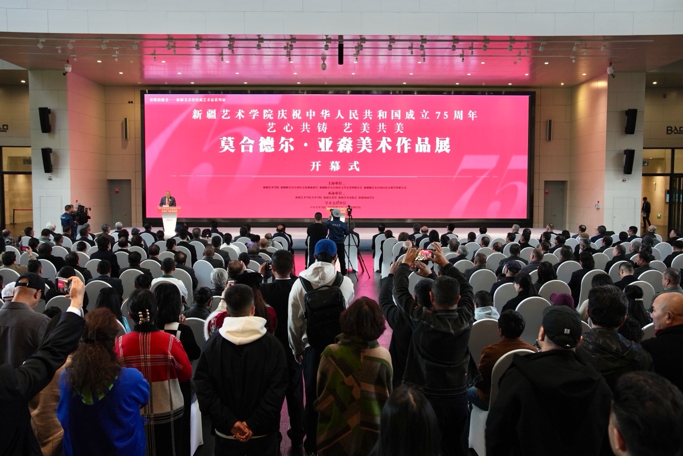 10月26日,新疆艺术学院“艺心共铸 艺美共美——莫合德尔·亚森美术作品展”在新疆美术馆开幕。