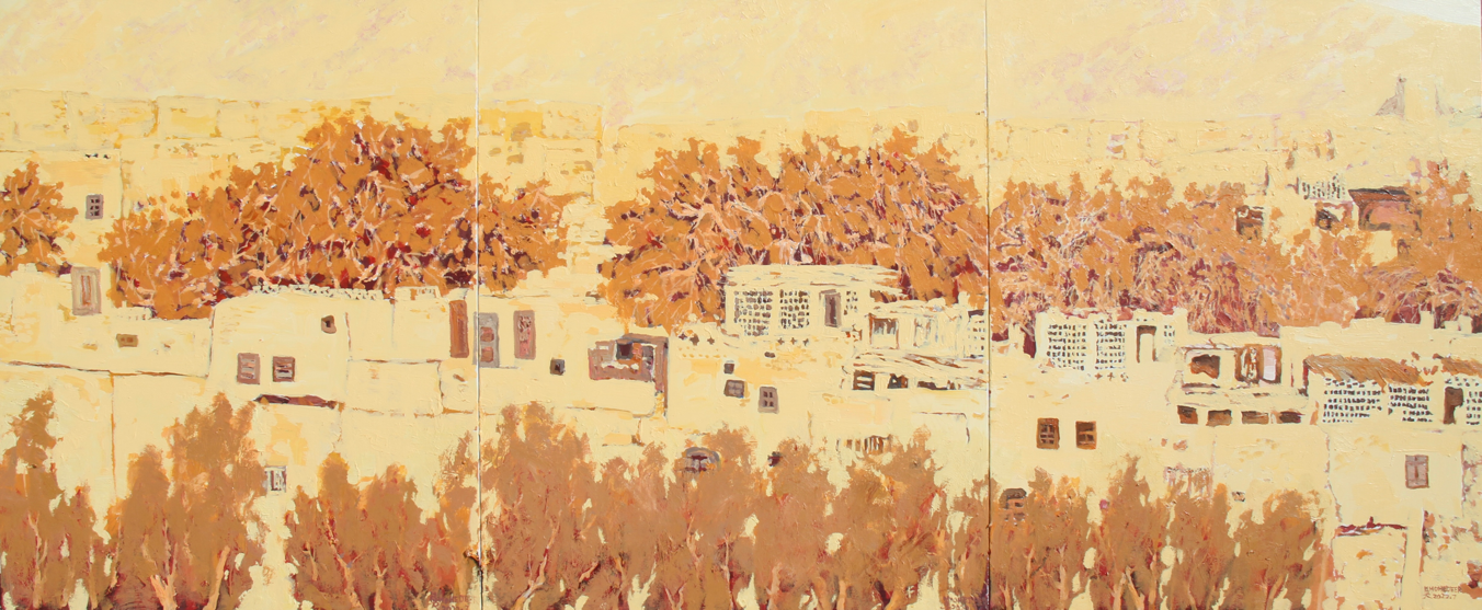此次展览共展出作品200余幅,分为群像生新、盛世繁花、吐峪之歌、白杨村语、情绘丝路五个单元,多以新疆的自然风光和人文风貌为题材。作品既吸收了西方油画的技法和表现形式,又融入了中国传统文化元素,通过对光影、色彩和构图的巧妙运用,将新疆山光水色的壮美与人文风情的细腻展现得淋漓尽致。绘画中蕴含的共知共享、艺美共美的精神,表现为用灿烂的色彩描绘温暖的新疆,用诗意的笔触抒写壮美的新疆,用艺术的方式传达祥和的新疆,体现了铸牢中华民族共同体意识的行动自觉和文化润疆的深层内涵。此次展览探索油画传统样式的当代表达,在固有的模式中融入写意属性,把传统的“墨分五色”融入中国油画的精神创造,形成独有的文化符号,蕴含传统与现代的共享意美。