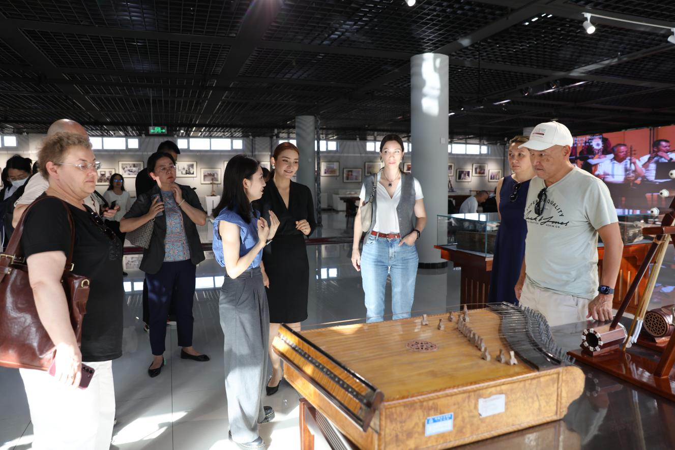 9月6日,哈萨克斯坦知名学者代表团一行来我校参观交流,期间参观了学校万桐书木卡姆文献馆、中华传统乐器馆等文化艺术场馆。