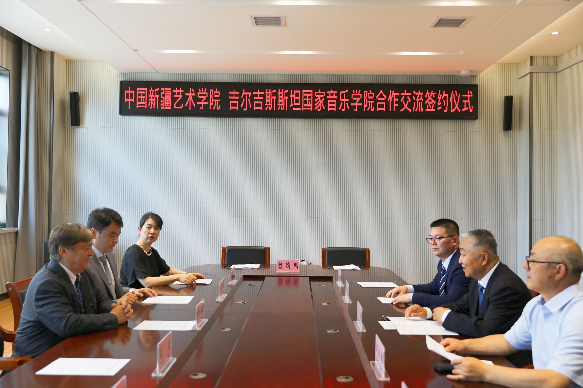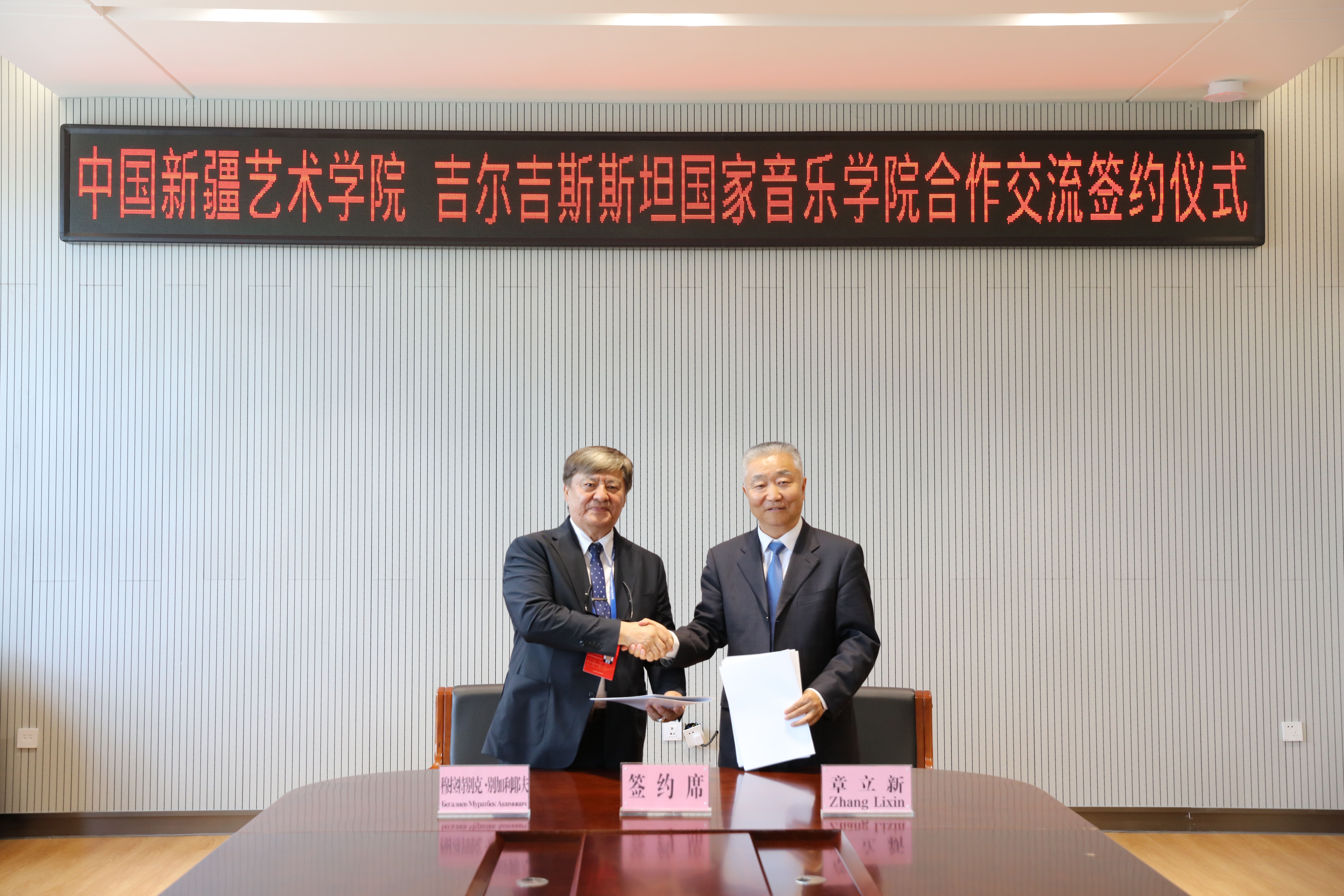 6月27日,吉尔吉斯斯坦国家音乐学院院长穆拉特别克·别加利耶夫一行到我校交流访问,并签订国际合作与交流协议。学校党委书记章立新,党委常委、宣传部部长周达疆,国际合作交流处、音乐学院等相关部门、院系负责人参加座谈交流。