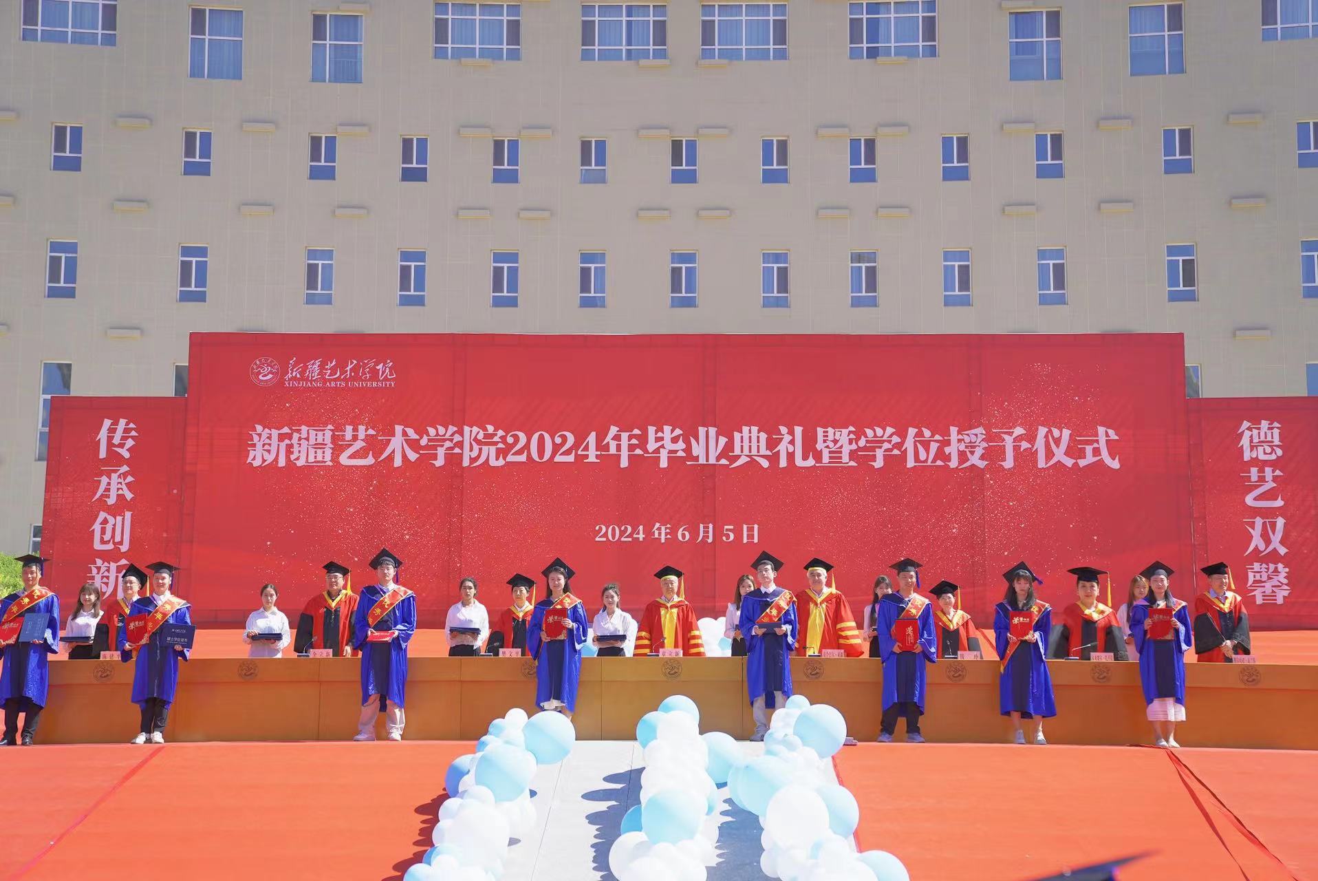 6月5日,新疆艺术学院2024年毕业典礼暨学位授予仪式在金桥校区新艺广场举行。学校党委书记章立新及领导班子成员莫合德尔·亚森、樊文平、钱玲、全立新、木亚赛尔·托乎提、陈建平、斯尔哈孜·布兰拜出席,各学院及相关职能部门负责人、辅导员、班主任及2024届毕业生参加毕业典礼暨学位授予仪式。