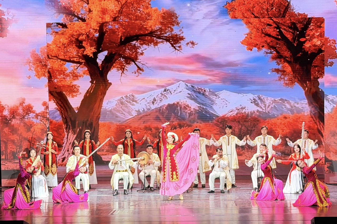 演出现场,音乐学院师生以其精湛的演奏技艺与真挚的情感表达,演绎出木卡姆艺术深沉的历史底蕴、丰富的音乐形态和强烈的艺术感染力,展现了新时代传统艺术的传承活力与创新风采,彰显了中华文化的丰富多彩和各民族交往交流交融的深厚情谊。