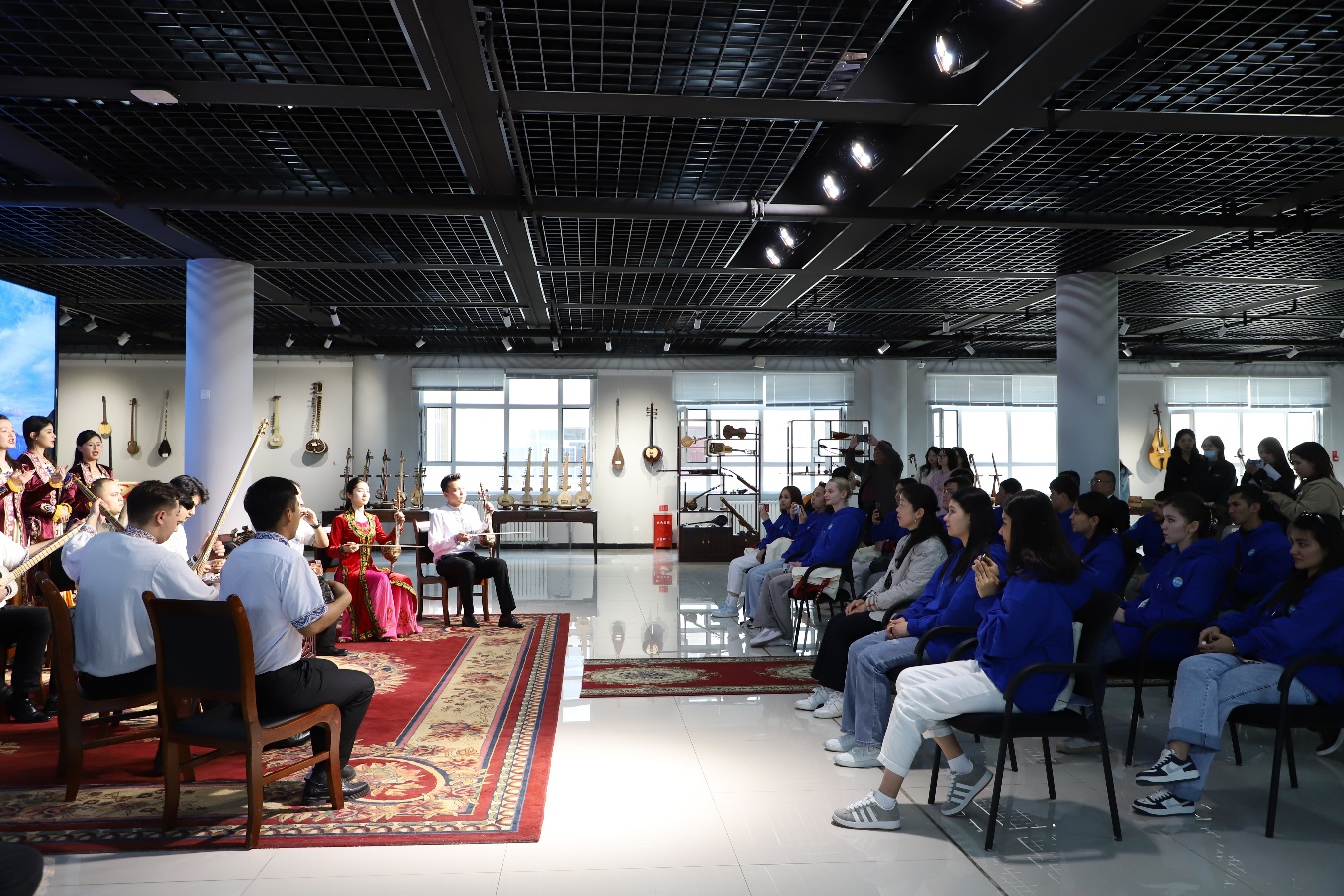 乌兹别克斯坦师生与新艺师生一同走进学校万桐书木卡姆文献馆、中华传统乐器馆、丝绸之路艺术史馆及中华文化体验馆等文化艺术场馆,观看木卡姆演出,沉浸式感受非遗魅力;重走丝绸之路艺术发展历程,感悟丝路千年风华;了解中华优秀传统文化,体验书法艺术的笔墨雅韵;欣赏经典剧目表演,领略别具特色的音乐舞蹈盛宴……在丰富多样的文化艺术活动中不断深化人文交流,实现互学互鉴、互融互通。
