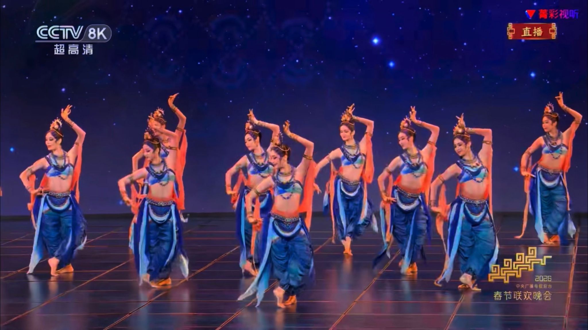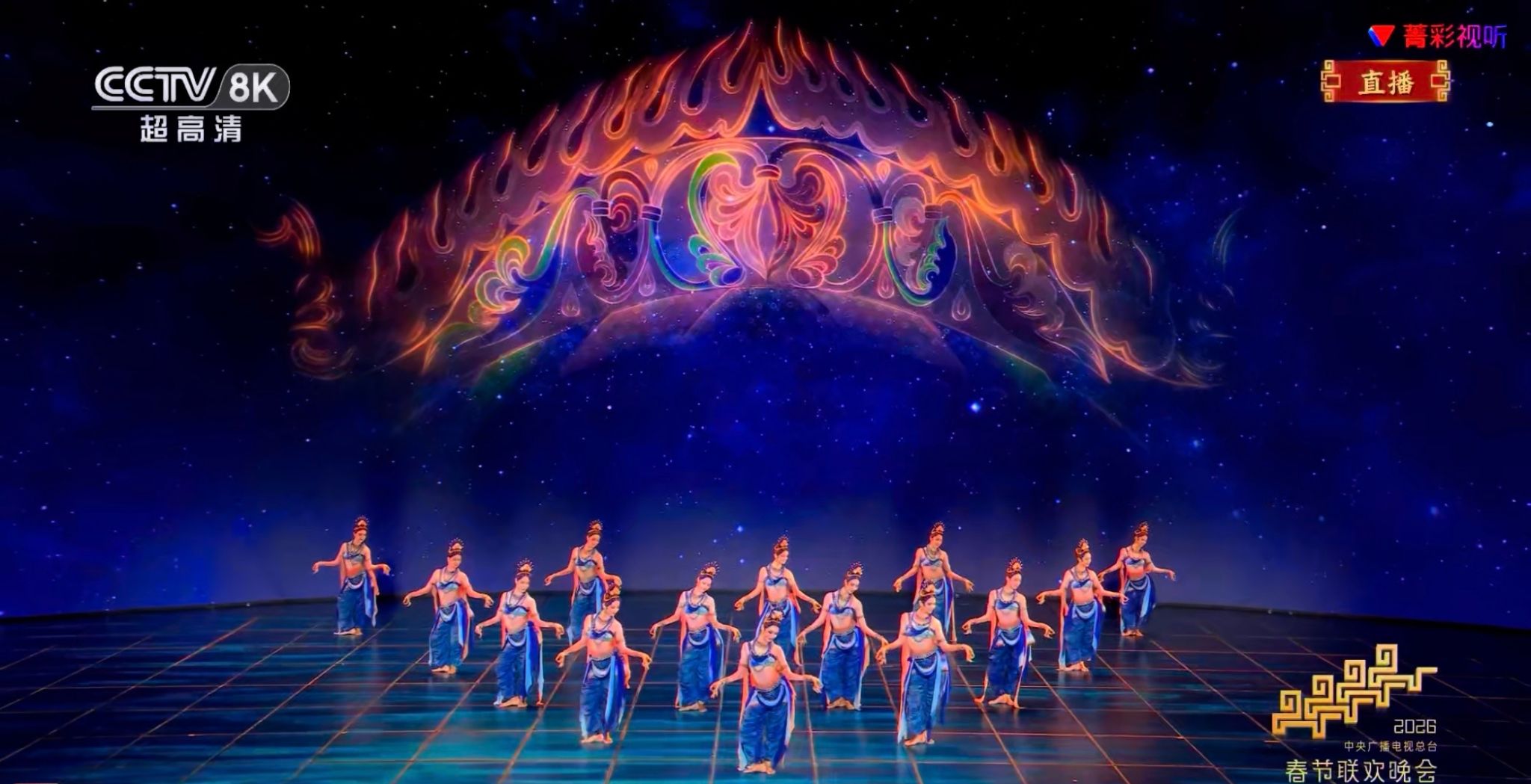 骐骥驰骋,舞韵新程;万象更新,春满神州。在2月16日新春除夕之夜的2026年中央电视台春节晚会上,新疆艺术学院17名舞蹈专业学生与兄弟单位共同演出的舞蹈《丝路古韵》惊艳亮相,舞蹈以灵动舞姿将古丝路文明与现代艺术完美交融,让沉睡千年的龟兹文化在当代舞台绽放璀璨新生。