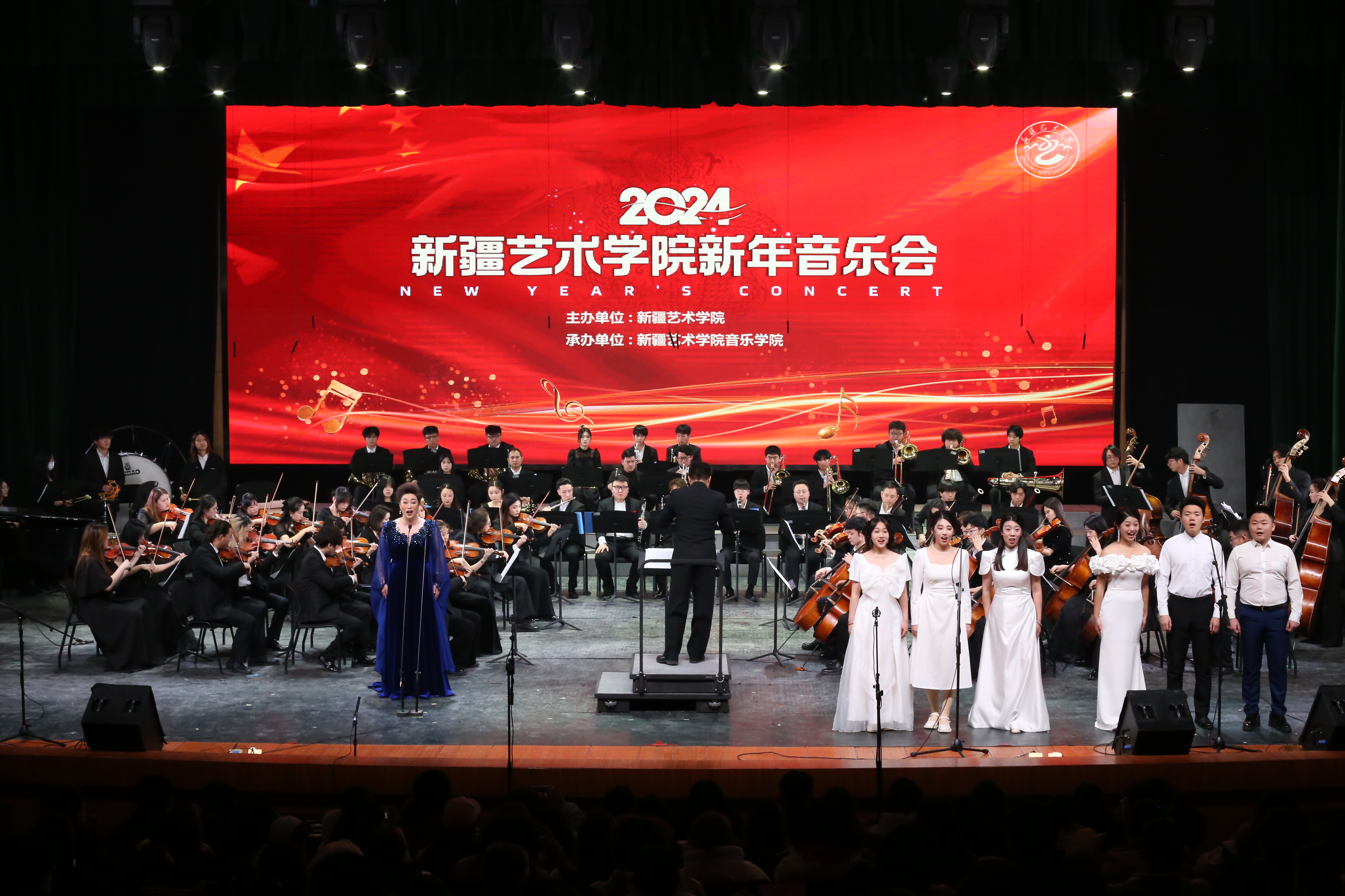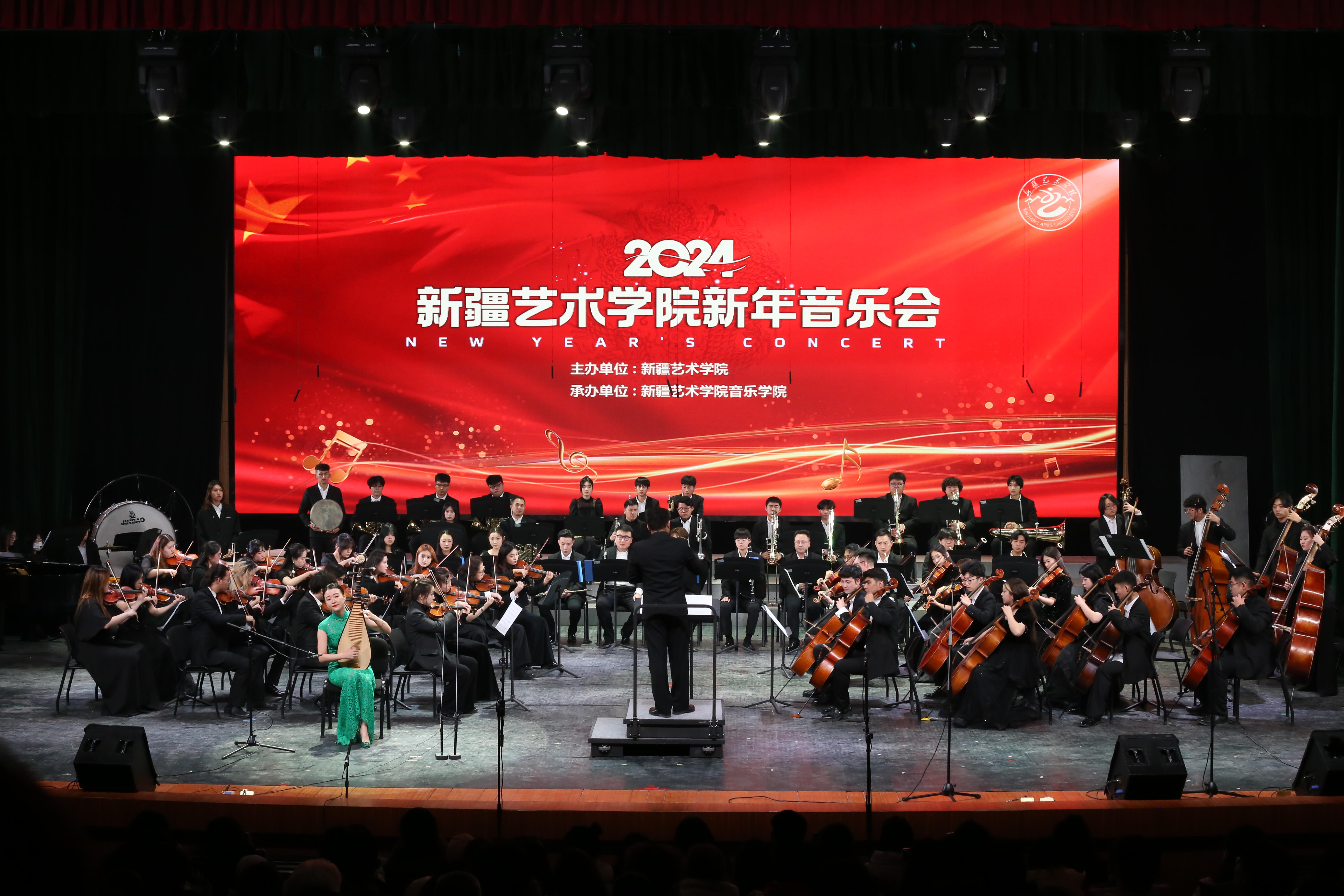 新疆艺术学院2024新年音乐会在学校党委安排部署下,由音乐学院承办。通过12个经典曲目的精彩演绎,展现师生扎实的专业功底和良好的舞台表演能力,使现场观众感受到了中华文化的深厚底蕴和独特魅力,是铸牢师生中华民族共同体意识的一次生动文化体验。全体师生将在学校党委坚强领导下,赓续中华文脉,聚焦文化使命,传承弘扬中华优秀传统文化,共迎美好新年!