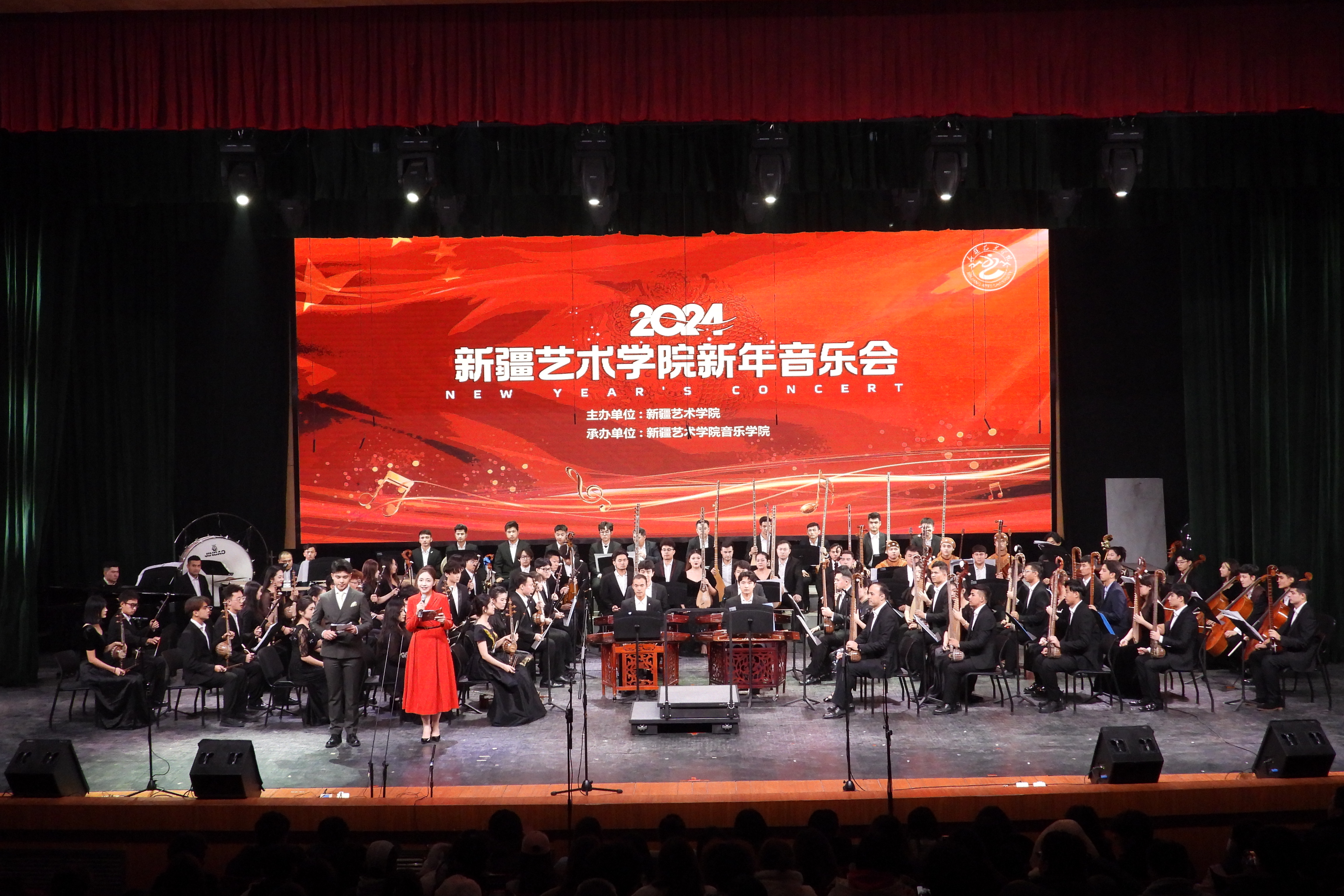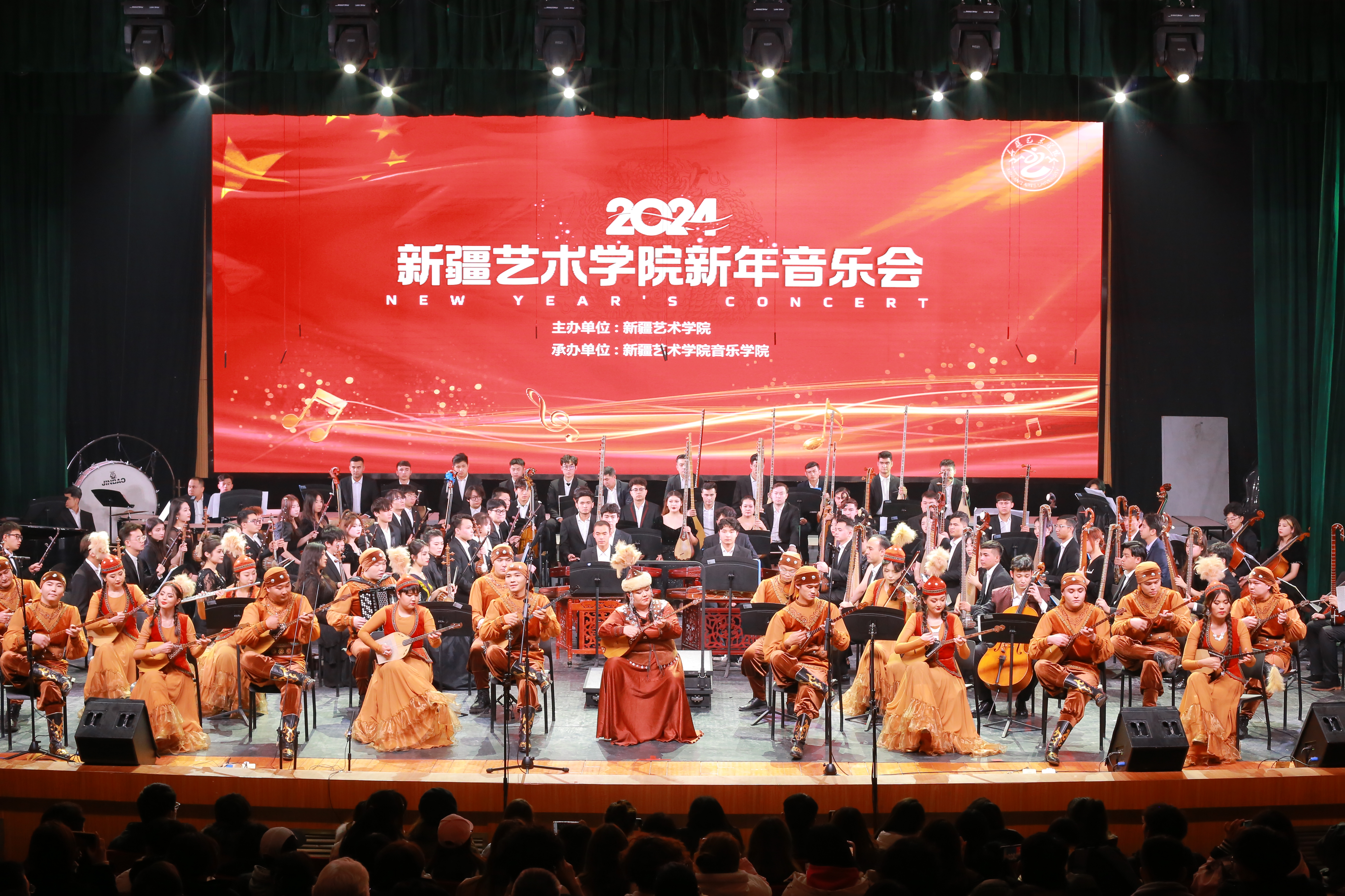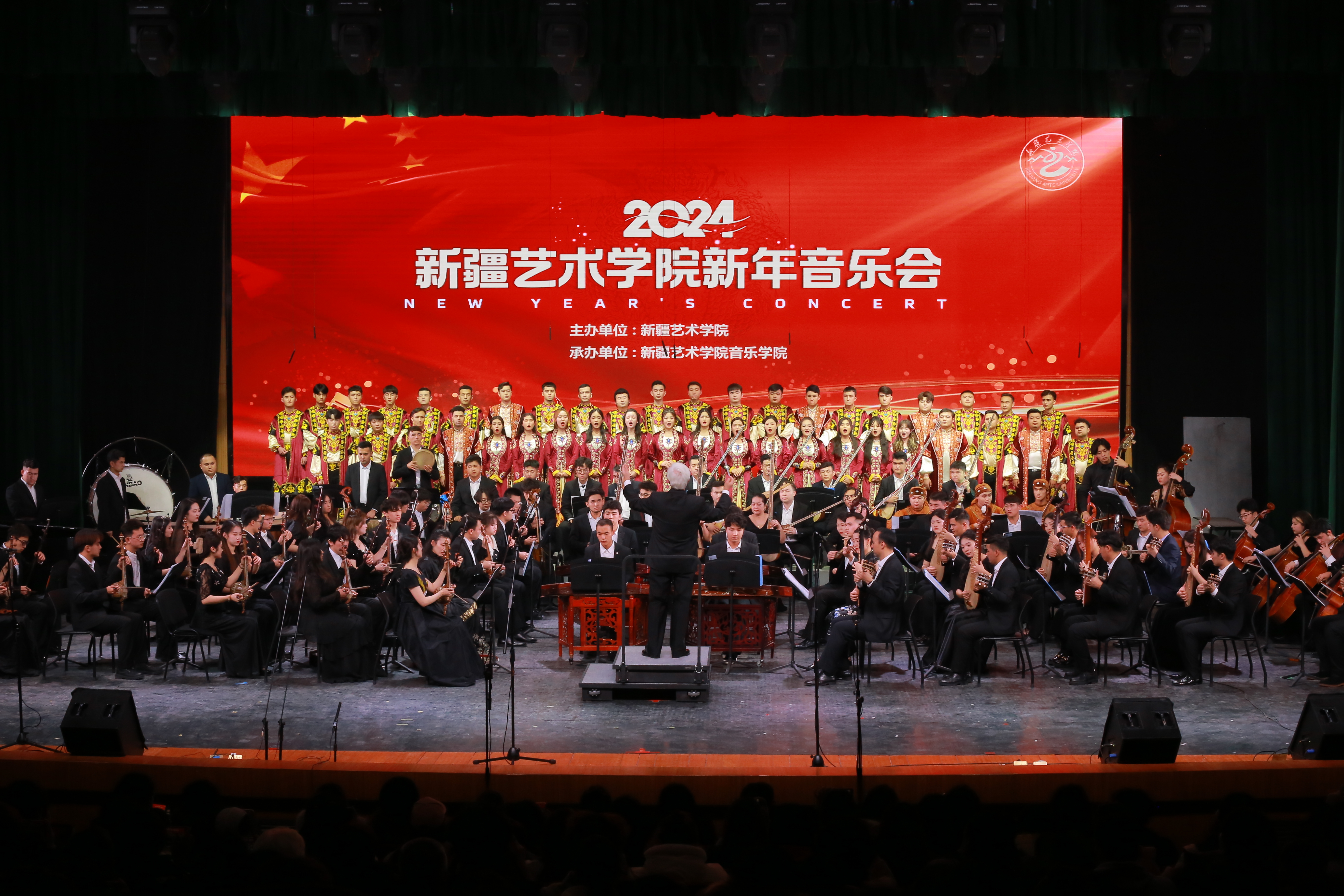 12月19日,新疆艺术学院2024新年音乐会在音乐厅隆重举行。学校党委书记章立新,学校领导班子成员莫合德尔·亚森、木亚赛尔·托乎提、斯尔哈孜·布兰拜、刘昌海,自治区及乌鲁木齐市相关部门领导、社会各界嘉宾及师生代表400余人观看演出。