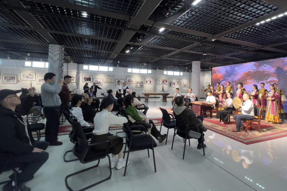 11月21日,“幸福就在这里”参访团走进新疆艺术学院的实践教学排练剧场、民族民间舞教学课堂、万桐书木卡姆文献馆和中华传统乐器馆等场地,从各自不同角度观察、感受新疆民族民间传统艺术的教学与传承取得的丰硕成果。