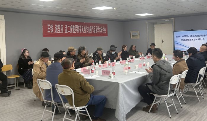 开幕式后,在学术中心举办了学术研讨会,王铁、波里亚、孟二虎三位老师依次分享了他们在俄罗斯访学的收获与感悟,新疆美术家协会、兵团美术家协会、新疆师范大学、昌吉学院、乌鲁木齐职业大学、新疆美术馆、新疆画院、乌鲁木齐市美术家协会等与会的30多位专家学者围绕主题进行了交流研讨与分享。