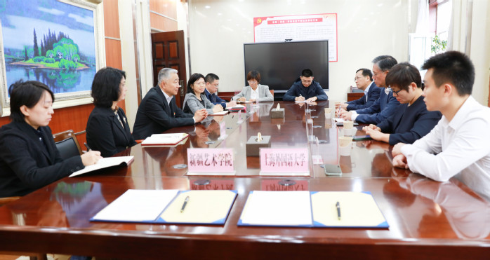 章立新书记代表学校对姜锋书记一行来访表示热烈欢迎,介绍了我校的发展历史和现状、推进内涵建设高质量发展及全疆实践教学与艺术创作基地建设等情况,姜锋书记对我校师生创作的经典艺术作品表示高度赞许并探讨了上海外国语大学在国际交流和新闻传播等方面与我校合作的契合点。双方就教育援疆、文化润疆,以建设“丝绸之路”经济带核心区文化科教中心为契机,在国际交流与合作、干部教师队伍建设和学科专业建设发展等领域开展合作进行了深入交流。会上,双方共同签订了《上海外国语大学 新疆艺术学院战略合作框架协议》。