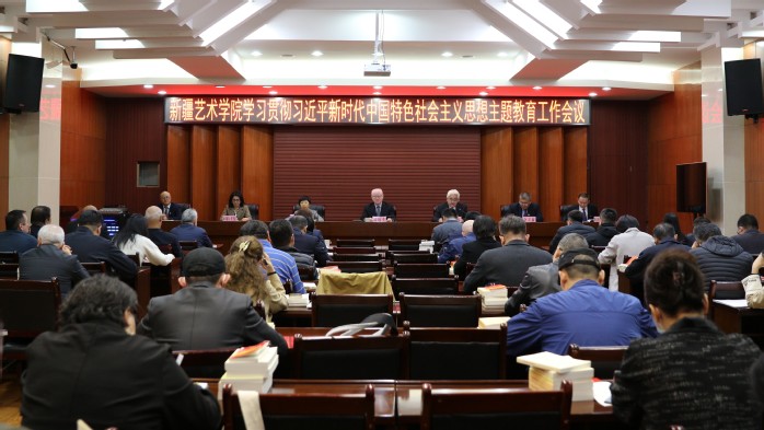 4月14日,新疆艺术学院学习贯彻习近平新时代中国特色社会主义思想主题教育工作会议在一号会议室召开。自治区第九巡回指导组组长、自治区政协科教卫体委员会副主任、新疆财经大学原党委书记周远生到会指导,新疆艺术学院党委副书记、院长、学校学习贯彻习近平新时代中国特色社会主义思想主题教育领导小组副组长莫合德尔·亚森作动员讲话,学校党委副书记、学校学习贯彻习近平新时代中国特色社会主义思想主题教育领导小组副组长樊文平主持会议。