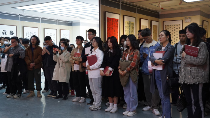新疆教科院德育美育健康教育中心主任鲁粲、新疆书法家协会副主席刘建新、陈伯阳和相关文化公司负责人、获奖代表、参展人员以及新疆艺术学院相关学院、部门负责人、部分师生参加开幕式。