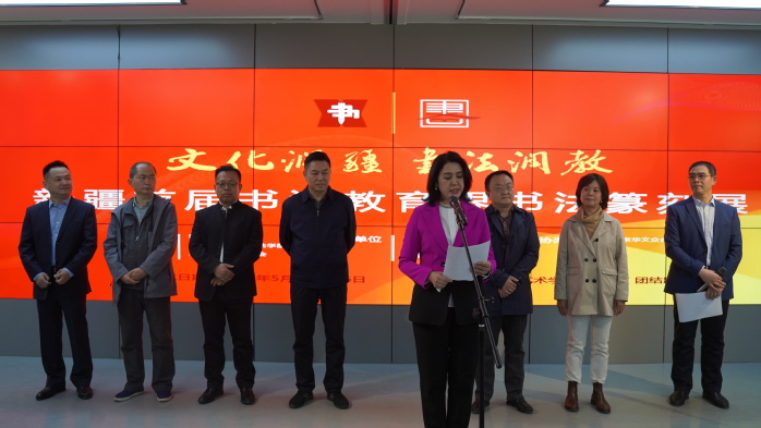 5月9日上午,“文化润疆·书法润教”新疆首届书法教育界书法篆刻展在新疆艺术学院美术馆开幕。新疆艺术学院副院长木亚赛尔·托乎提、中国书法家协会理事、新疆书法家协会主席张鸿林出席开幕式并讲话。