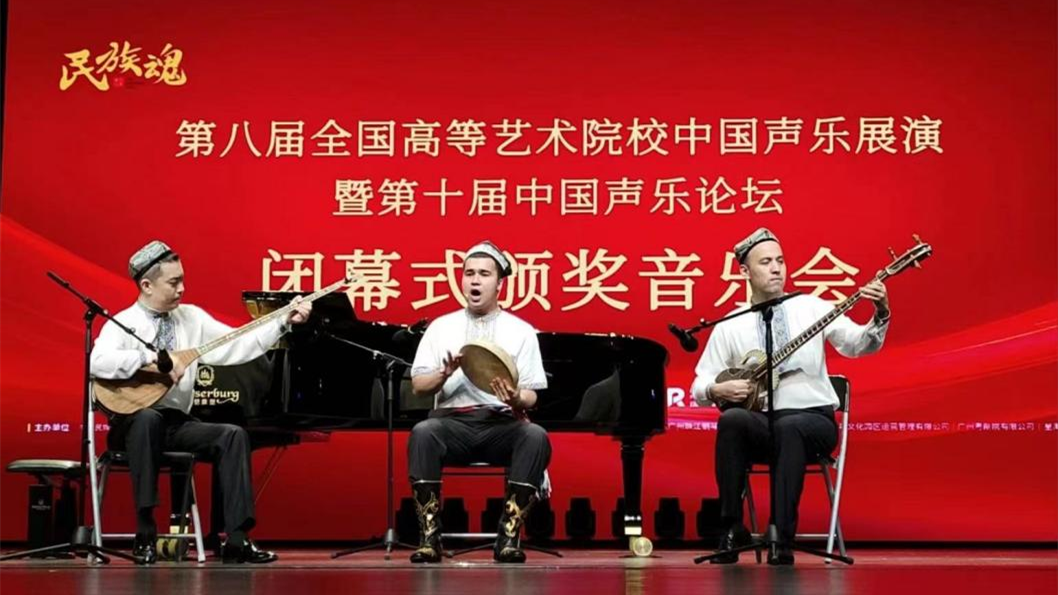 2020级音乐教育专业学生麦吾郎·麦麦提同学在闭幕式颁奖音乐会上演唱