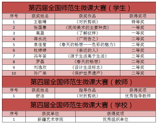 第四届全国师范生微课大赛我校美术学院获奖情况