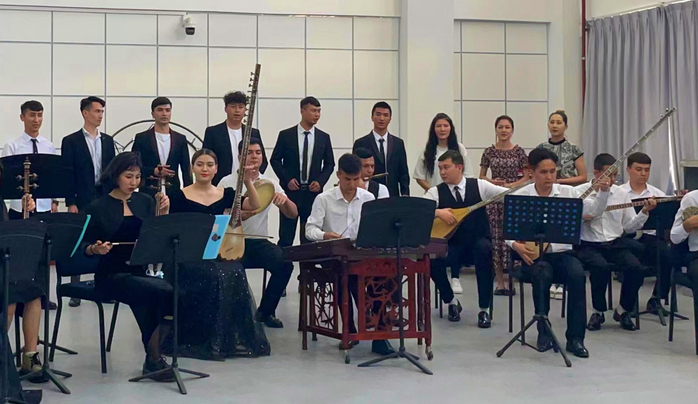 中国传统乐器演奏、木卡姆演唱方向通过古筝、二胡、热瓦普、冬不拉重奏等演奏形式,将唢呐、扬琴、竹笛、艾捷克、胡西塔尔等众多传统国乐乐器融合其中,共同演奏《我和我的祖国》等经典作品,演唱《切比亚特木卡姆》等木卡姆片段,原汁原味地展现了世界非物质文化遗产的风采,展现了民族风格与时代精神的完美交融;钢琴演奏、管弦演奏、流行音乐演唱、演奏、音乐教育方向,通过演出《梨花颂》《萨利哈最听毛主席的话》《青玉案·元夕》《Autumn leaves》等中外经典作品展现了蓬勃的朝气与活力;电子音乐制作方向通过演出毕业生创作的系列主题原创作品展现了家国情怀与使命担当。