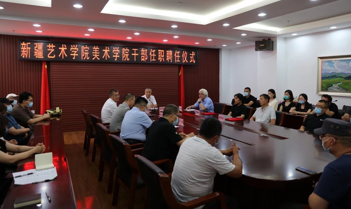 7月15日下午,美术学院院长任职、名誉院长聘任仪式在团结路校区举行。学校党委书记章立新出席仪式并讲话。仪式由学校党委副书记、院长莫合德尔·亚森主持,学校党委常委、副院长全立新宣读关于贺羽担任美术学院院长的任职文件、宣读关于程林新、波里亚担任美术学院名誉院长的聘任文件。