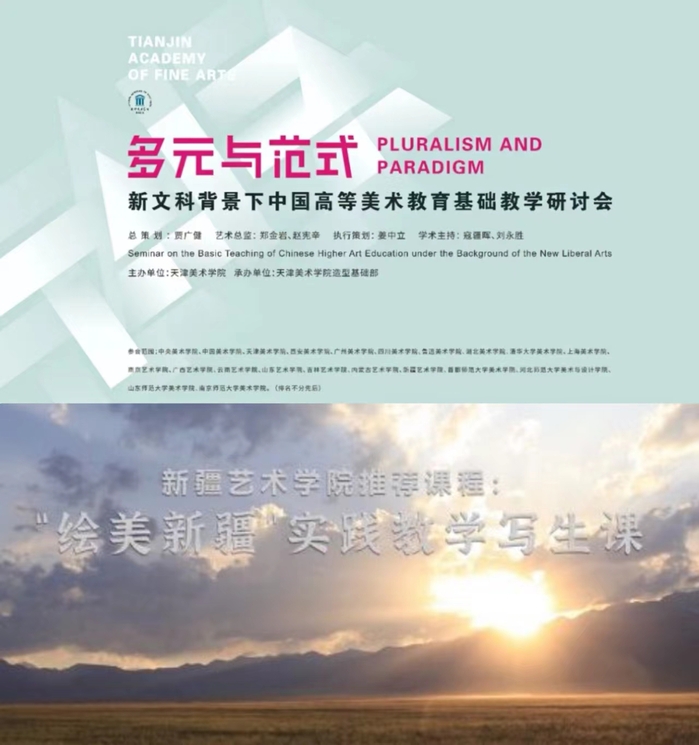 2022年6月6日,“多元与范式:新文科背景下中国高等美术教育基础教学研讨会”在天津美术学院美术馆召开。本次活动由天津美术学院主办,全国21所高等美术院校和综合性艺术院校以线上线下结合的方式共同参与。我校美术学院受邀参加了此次研讨会并向全国专家分享了《“绘美新疆”实践教学写生课程》。
