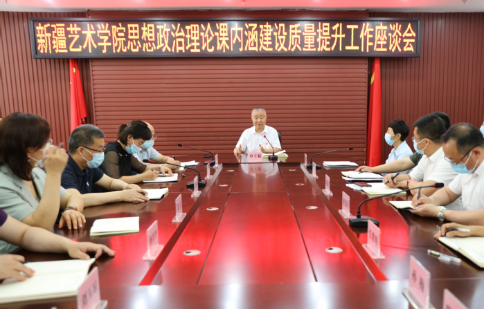 章立新书记回顾分析了近年来中央和自治区党委关于高校思想政治工作和思想政治理论课建设的总体部署安排并紧密结合我校实际围绕内涵建设、质量提升工作对我校思想政治理论课建设进行了深入分析、作出全面安排部署并提出宝贵意见:一是思想政治理论课教师要对马克思主义理论、习近平新时代中国特色社会主义思想做到真学、真懂、真信、真用;二是思想政治理论课教育教学过程要紧密结合现实问题,以学生学习、生活、择业、成长过程中遇到的实际问题为切入点,增强思想政治理论课的针对性、时效性;三是要继续推进思想政治理论课改革,在教学内容上推动“思政+艺术”深度融合,在教学形式上促进“思政+互联网”紧密结合;四是要充分发挥思想政治理论课教师队伍带头作用,引领、指导、助力学校的课程思政建设;五是要深入开展大中小学思政课一体化建设,学校作为基地院校要带头深入基层、调研考察,积极推进工作;六是加强思想政治理论课教师队伍建设和能力水平提升。