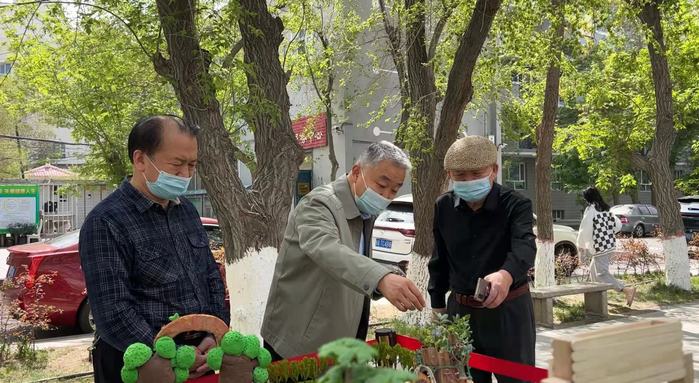 国盾教授在为党委书记章立新和党委常委、纪委书记吾甫尔·如苏力介绍展览模具