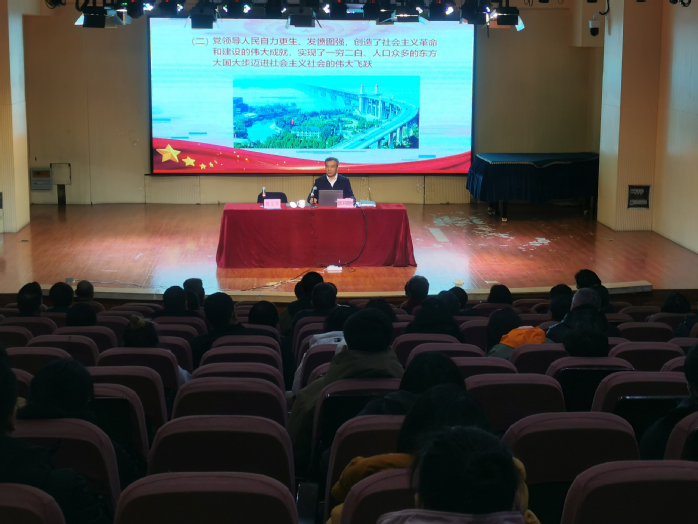 12月6日上午,学校学习贯彻落实党的十九届六中全会精神自治区宣讲团报告会在学术厅举行。自治区宣讲团成员、新疆医科大学党委副书记、校长凯赛尔·阿不都克热木作宣讲报告。学校党委副书记樊文平主持报告会,学校党委领导班子成员、全体处级干部及师生代表聆听报告。