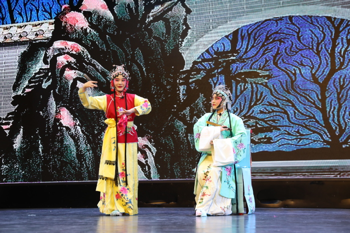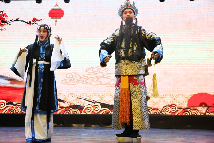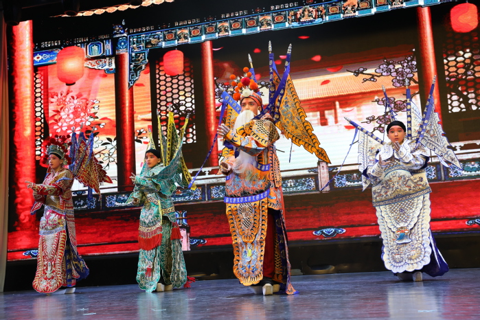 来自五个民族的67位同学,汇报演出了《林冲夜奔》《卖水》《石秀探庄》《钓金龟》《打焦赞》《武家坡》等六部经典戏曲的精彩选段,充分展示了我校戏曲教育的优秀教学成果,展现了学校各民族师生热忱传承中华优秀传统文化的精神面貌。表演学生之一,中国少儿戏曲“小梅花”称号获得者菲茹孜·买买提说:“因为我自己也特别喜欢京剧这个专业,想传承下去,所以我选择了京剧表演。”