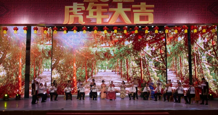 “石榴花开岳普湖”晚会共分为“序曲”“中华故事展宏图”“民族精神传丝路”“文化润疆送新福”“尾声”五个篇章。我校师生助力当地文艺工作者和村民将中华优秀文化蕴涵的思想和理念融入文艺作品,创作了包括表现少年儿童学习国粹、传承中华优秀传统文化的京剧作品《“声”动梨园》、运用快板和莱派尔反映农村变化的创新作品《新时代的岳普湖》以及歌颂新疆基层干部坚韧不拔精神的舞蹈作品《颂胡杨》等,呈现出了一台精彩纷呈的文艺晚会。