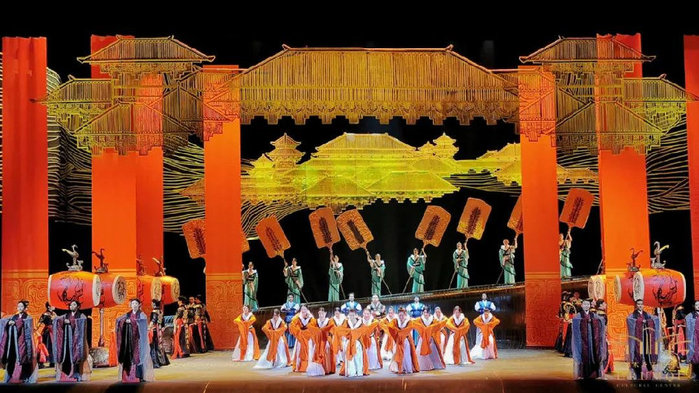舞剧《张骞》以汉代张骞出使西域为蓝本创作,由《授节》《守节》《传节》《使节》四幕组成,演绎了张骞出使西域的“凿空之旅”,展现了各民族广泛交往、全面交流、深度交融的生动场景。
