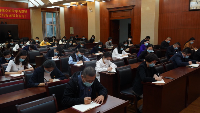 章立新书记在讲话中深刻阐述了加强机关党的建设工作的重要意义,全面总结了机关党建工作取得的成绩和存在的不足,对机关党的建设工作进行了安排部署。他强调,机关党的建设是机关建设的根本保证,对其他基层党组织有着风向标作用,各党支部要做到以下几点:一是在政治建设上作表率,增强“四个意识”、坚定“四个自信”、做到“两个维护”;二是在学懂弄通做实习近平新时代中国特色社会主义思想上作表率,强化理论武装;三是在提升党组织的凝聚力战斗力上作表率,强化组织建设;四是在转变工作作风、自觉服务师生上作表率,强化服务意识;五是在坚持廉洁自律上作表率,强化正风肃纪,进一步发挥示范引领作用,推动各项工作落实落细,推动机关党的建设工作再上新台阶。