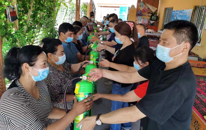 周一早晨,结亲干部和驻村工作队、村民们一起在村委会参加升旗仪式,全体党员举起右拳庄严宣誓,重温了入党誓词。为了做好防火防灾工作,学校为4个驻村点捐赠了80条消防水袋,结亲干部为亲戚捐赠了灭火器,并向村民教授了使用方法。正值高考结束,结亲干部指导亲戚家的孩子进行志愿填报。努力把每一件小事做好,是每位结亲干部的心愿。群众事无小事,结亲干部们以史明志,学史力行,将初心使命践行在希望的田野、丰收的大地上。
