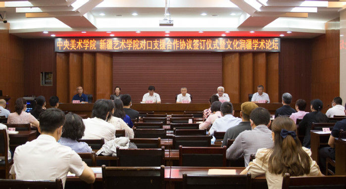 7月7日,中央美术学院与我校举办了对口支援合作协议签订仪式暨文化润疆学术论坛。中央美术学院党委书记高洪、党委副书记王晓琳、副院长吕品晶、学校党委书记章立新、党委副书记、院长莫合德尔·亚森、党委常委、副院长全立新出席签订仪式,两校干部教师代表参加仪式。签订仪式由学校党委副书记、院长莫合德尔·亚森主持。