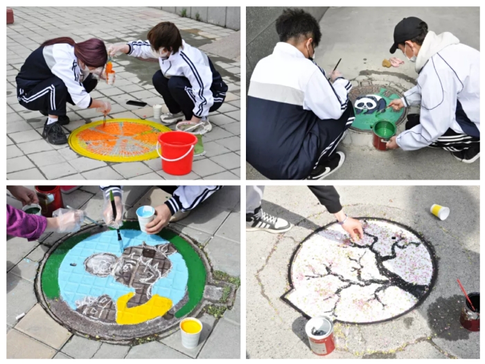设计学院开展“学党史 办实事”井盖创意涂鸦活动