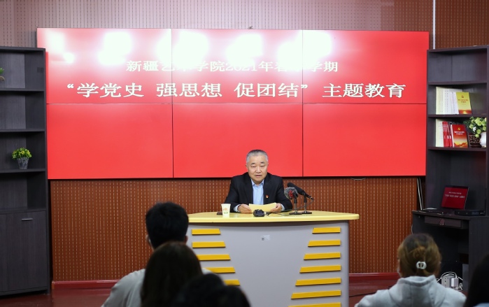 章立新书记从党史学习教育、贯彻落实第三次中央新疆工作座谈会精神、疫情防控三个方面进行了讲授,并对全体学生提出三点要求:一是要深刻认识党史学习教育的重大意义,通过学习深刻铭记中国共产党百年奋斗的光辉历程,深刻认识中国共产党为国家和民族作出的伟大贡献,深刻感悟中国共产党始终不渝为人民的初心宗旨,学习传承中国共产党在长期奋斗中铸就的伟大精神。做知史爱党、知史爱国、知史明志的新时代爱国者。二是要坚持不懈强化思想理论武装,全面提高综合素质,坚持以人民为中心的文艺观,深入学习贯彻第三次中央新疆工作座谈会精神,做社会稳定、长治久安的维护者。三是要学习掌握防疫知识,保持健康生活习惯和良好心态,提高自我防护和免疫能力,认真落实常态化疫情防控各项要求,做健康校园的守护者。