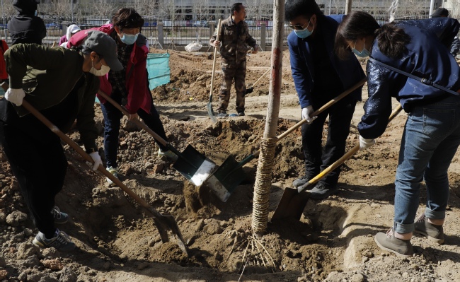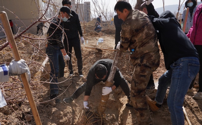 党风和煦春意浓,植树添绿正当时。近日,学校开展了“学党史 做实事 植树造林 共建美丽校园”植树活动。学校党委书记章立新、学校党委领导班子成员莫合德尔·亚森、吾甫尔·如苏力、全立新、斯尔哈孜·布兰拜、周达疆与机关教辅及各学院教职工代表共同参加义务植树,为金桥校区增添新绿。