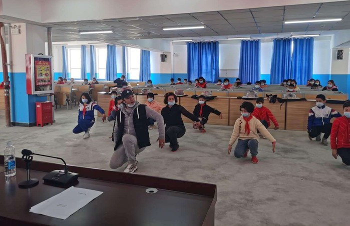 学校教师给当地学生教授舞蹈
